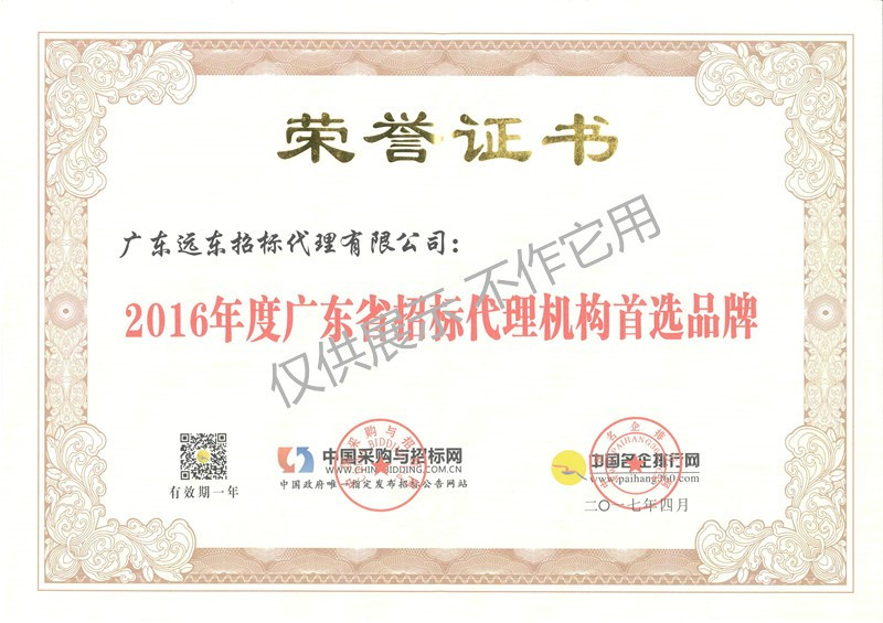 2016年度廣東省招標(biāo)代理機(jī)構(gòu)首選品牌