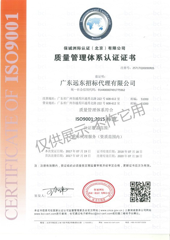 質(zhì)量管理體系認(rèn)證證書