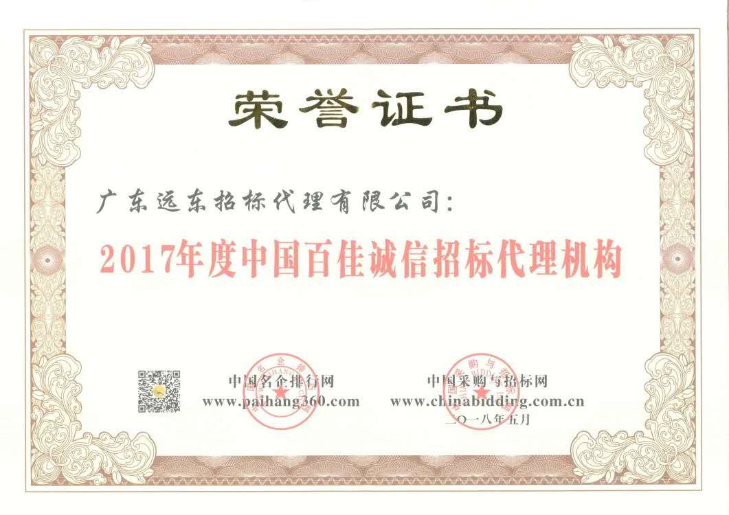 2017年中國百佳誠信招標(biāo)代理機(jī)構(gòu)