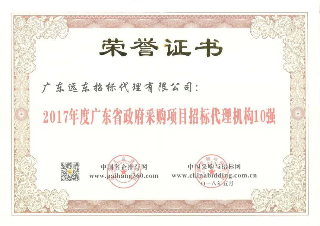 2017年廣東省招標(biāo)代理機(jī)構(gòu)10強(qiáng)