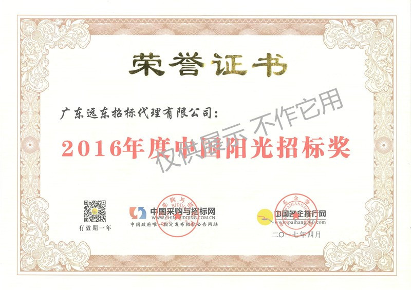 2016年度中國陽光招標(biāo)獎