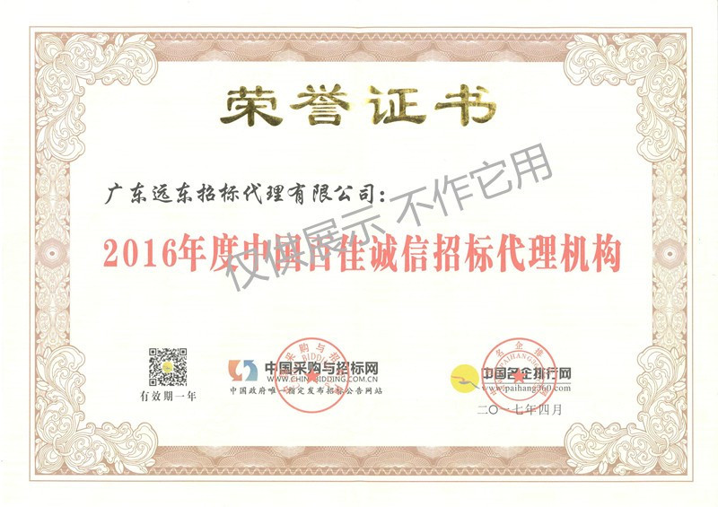 2016年度中國百佳誠信招標(biāo)代理機(jī)構(gòu)